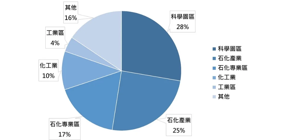 我國氨氮廢水排放量有 27.7 %來自科學園區,24.8 %來自石化產業,17.4 %來自石化專區,10.6 % 來自化工業,約有八成與工業化產業高度相關,如圖(一) ,且對環境會造成許多汙染與傷害。