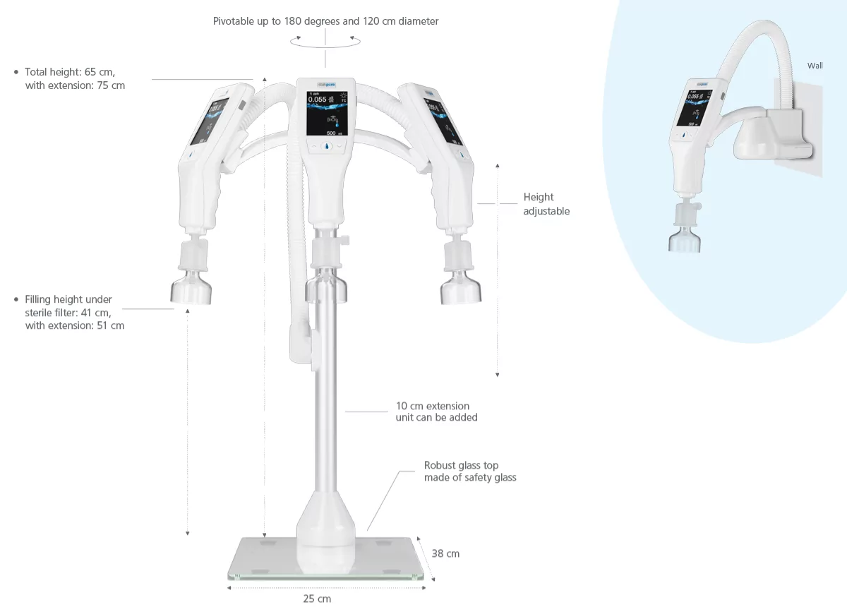 彈性安裝:主機可隱藏於桌下,搭配 OptiFilltouch 外接桌上/壁掛分注器,最佳化實驗室空間。